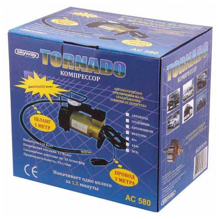 Отзывы о Компрессор автомобильный воздушный металлический от авторозетки Торнадо АС580 40 л/мин / Насос автомобильный электрический SKYWAY, S02001019