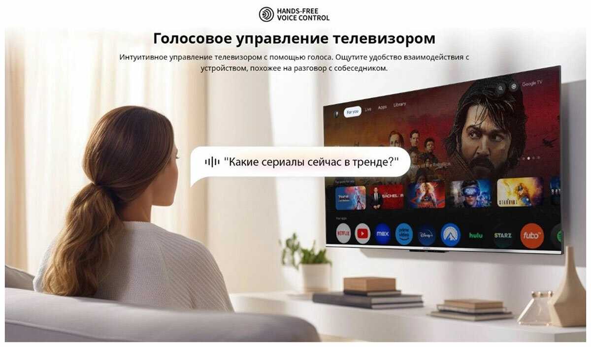 Матовый экран, хорошая картинка, приятный звук, 4k, google tv — и всё это по доступной цене. Пульт с программируемой клавишей, на которую можно повесить четыре любимые приложения.
