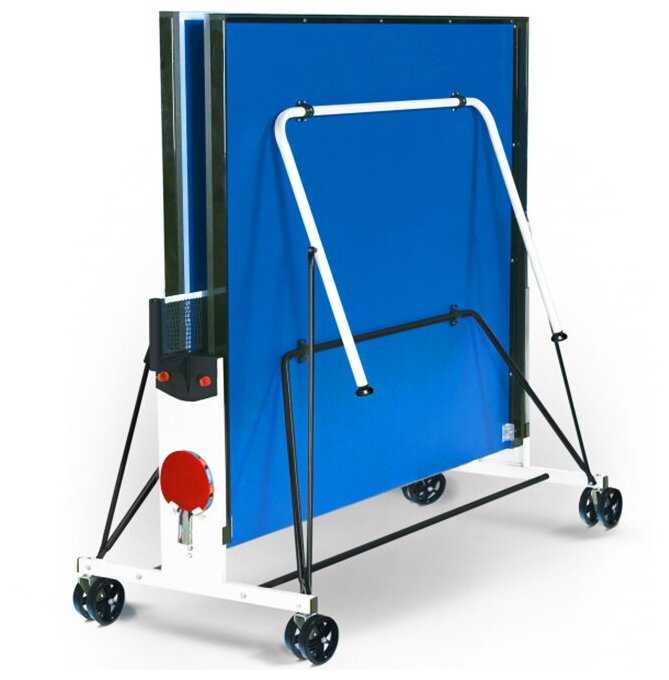 Особенности : | держатель для ракеток, одностороннее складывание, полное складывание, регулировка натяжения сетки, сертификат ITTF, съемная сетка, транспортировочные колесики |