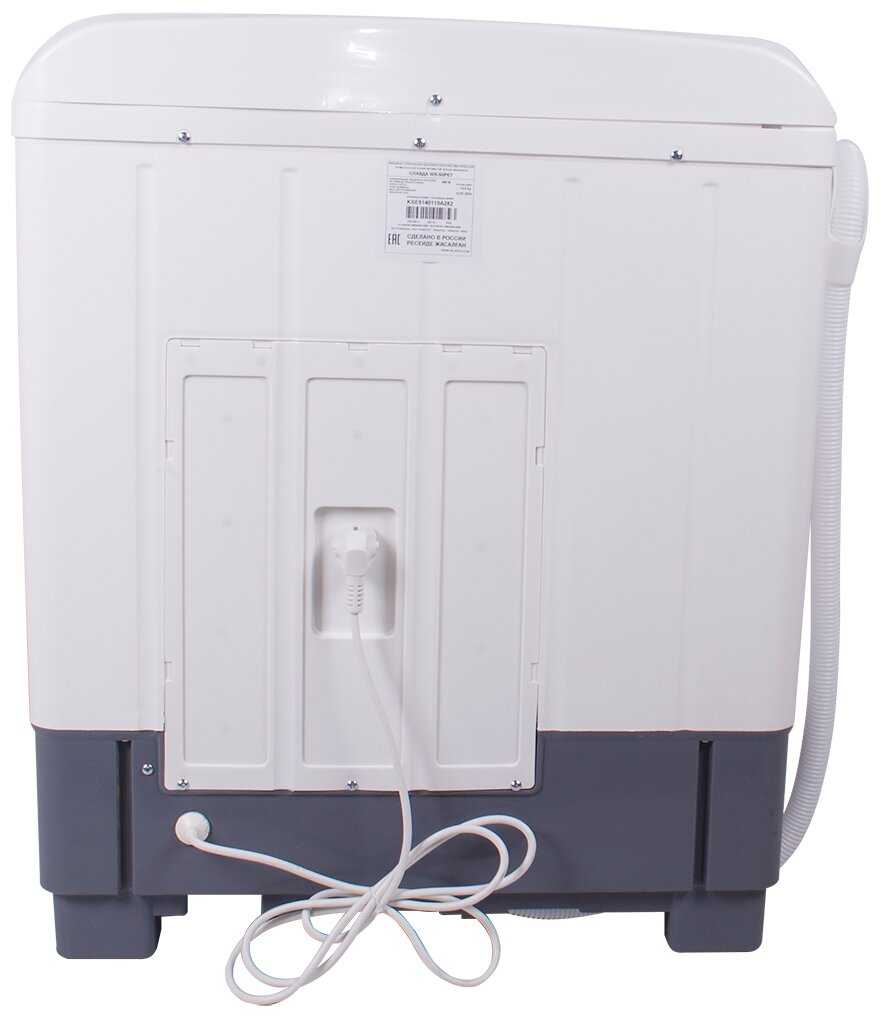 - + Не надо стирать руками. Стирает хорошо, немного перекручивает белье, но это можно решить защитным мешочком. Все работает, можно одновременно стирать и отжимать. Отжимает хорошо. Лёгкая, я сама смогла её распаковать, переставить, попользоваться, и упаковать для перевозки на дачу.