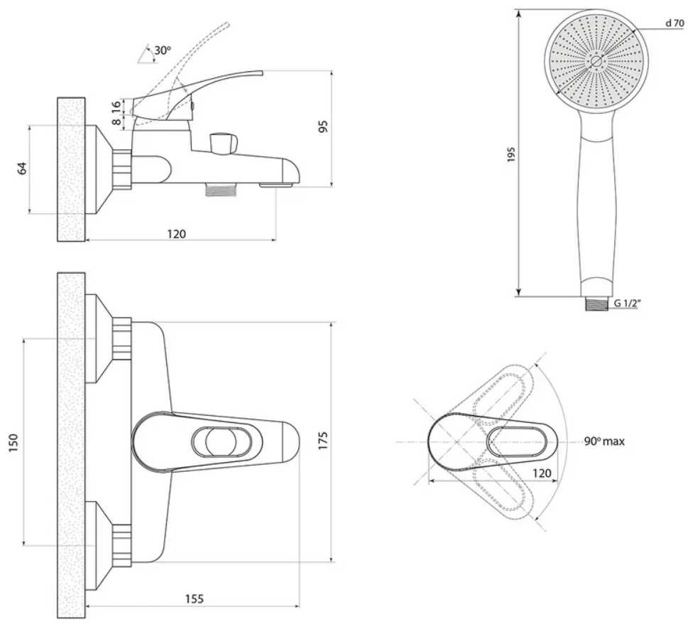 | Комплектация : | лейка, смеситель, шланг, эксцентрик |