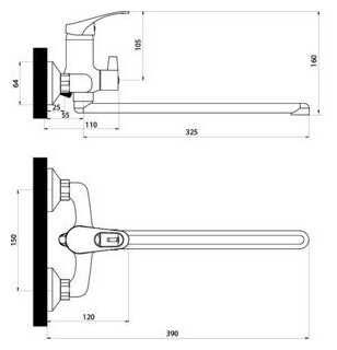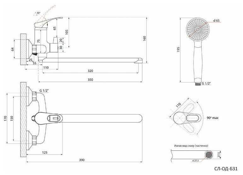 | Особенности : | S-образные эксцентрики, антиизвестковое покрытие, аэратор, держатель душевой лейки, поворотный излив |