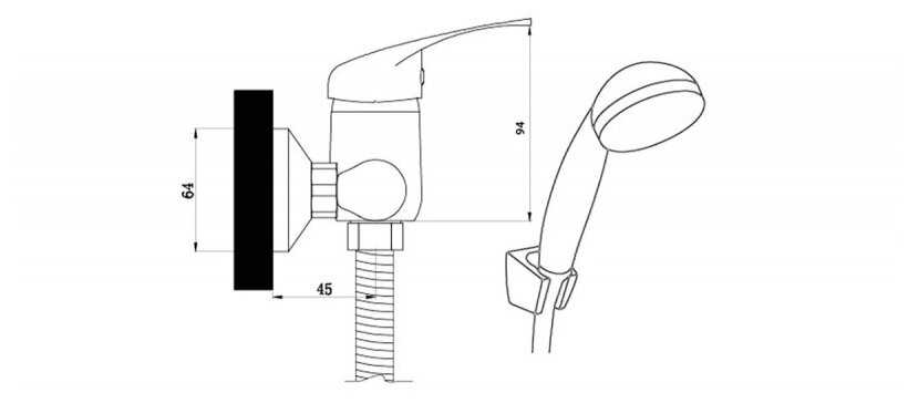 | Комплектация : | держатель лейки, лейка, смеситель, шланг, эксцентрик |