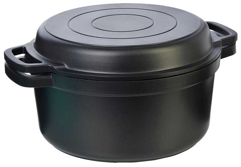 - + Легкая, удобная, хорошо прогревается. Использую как для выпечки хлеба в духовке, так и просто готовить. И еще удобная крышка-гриль, стала применять вместо сковороды-гриль, если надо небольшую порцию приготовить.