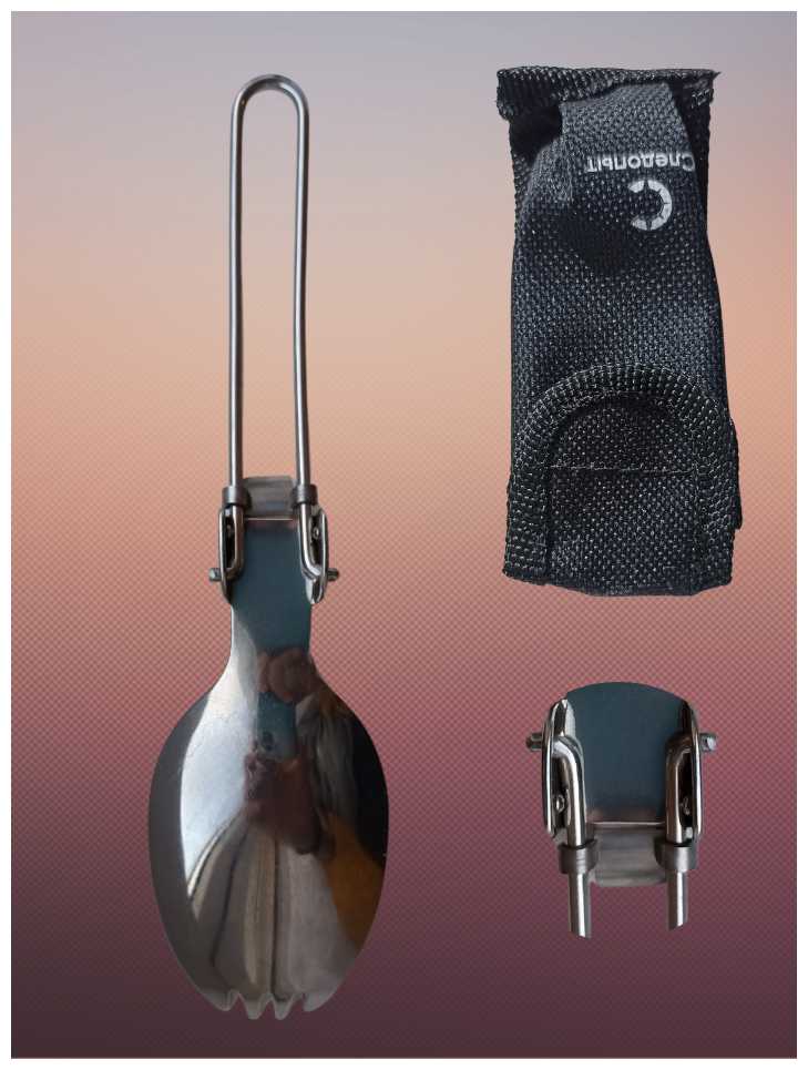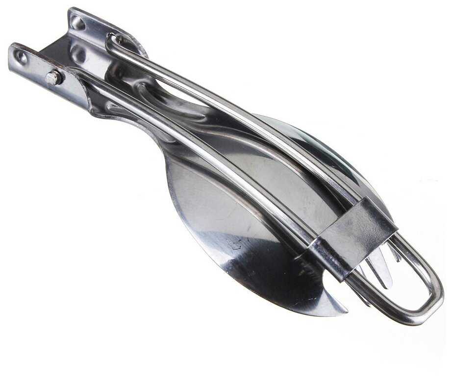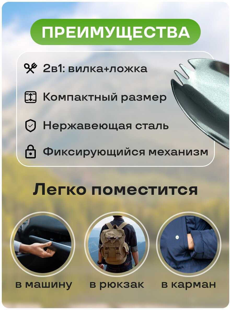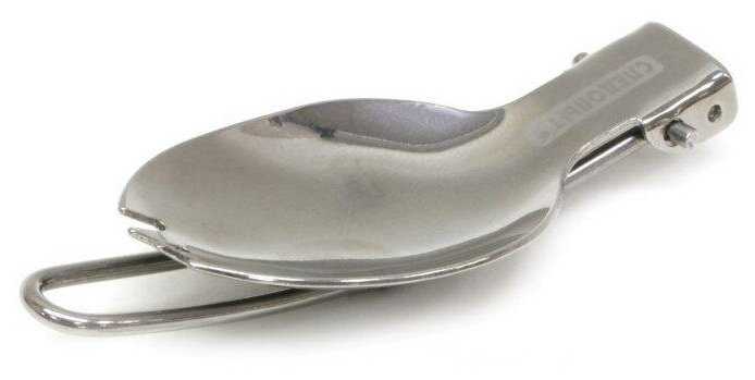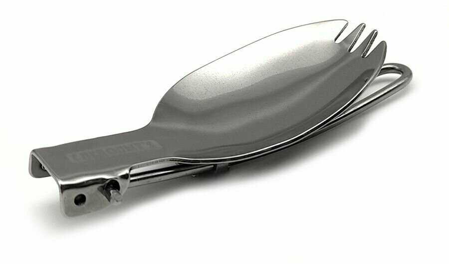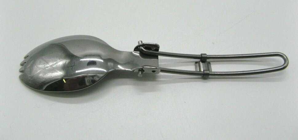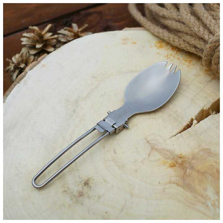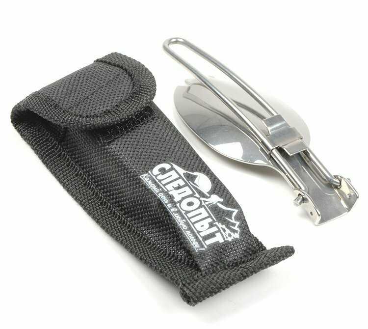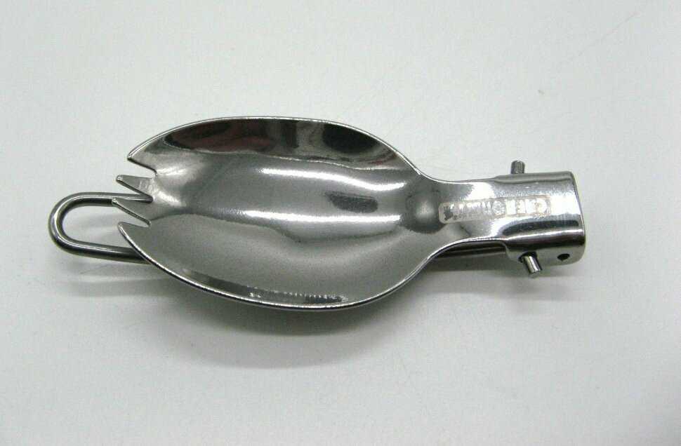 - + И ложка и вилка все в одном, можно носить с собой в кармане, на ремне, или на поясе. Хроница в чехле.