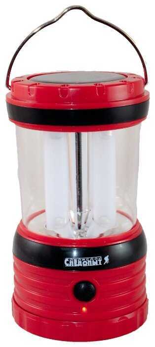 - + Светит достаточно хорошо для кемпинга рассеивающим светом. Есть возможность работы от 3х батареек типа АА (R6, LR6)