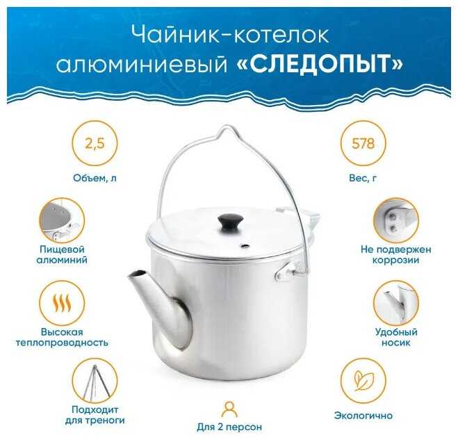 - + хороший чайник для компании на природу, хоть для костровой треноги, хоть для электро плитки