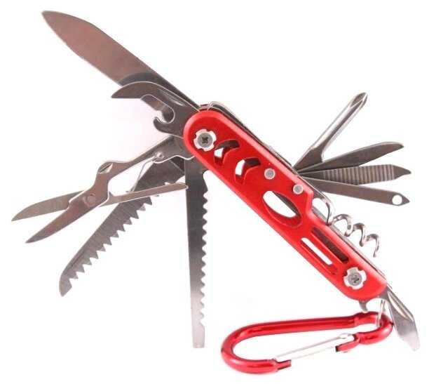 | Инструменты (функции) : | игла, карабин, консервный нож, напильник, нож, ножницы, отвертка, открывалка для бутылок, пила, шило / кернер, штопор |