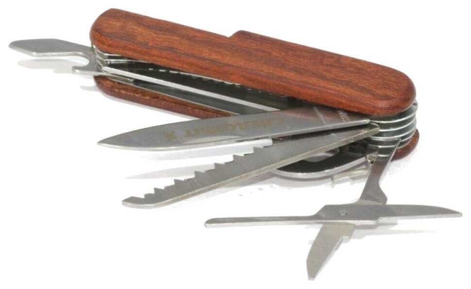 | Инструменты (функции) : | консервный нож, напильник, нож, ножницы, отвертка, открывалка для бутылок, пила, пилка для ногтей, шило / кернер, штопор |