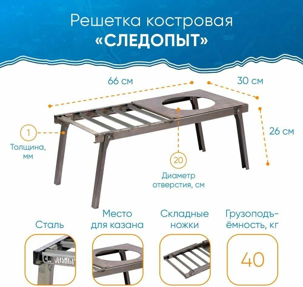 Характеристи СЛЕДОПЫТ Решетка костровая (7823867)