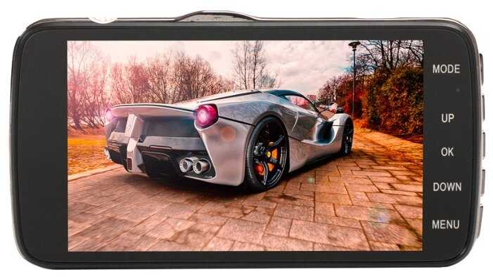 - видеорегистратор с 2 камерами запись видео 1920×1080 при 30 к/с угол обзора 150° с экраном 4" 800×480 датчик удара (G-сенсор) работа от аккумулятора поддержка карт памяти microSD (microSDHC) встроенный микрофон подключение внешних камер