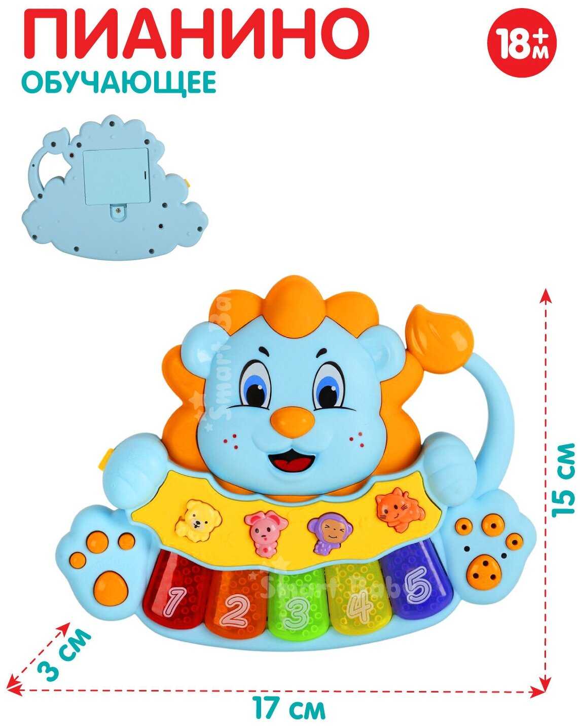 - + Весёлые мелодии , звуки животных , подсветка кнопок, 2 уровня громкости