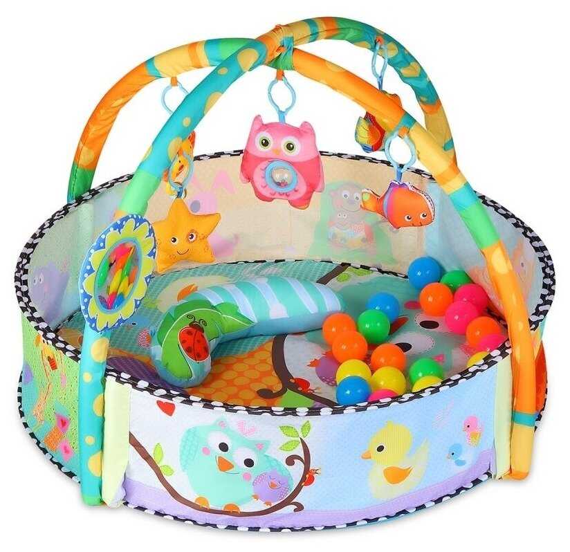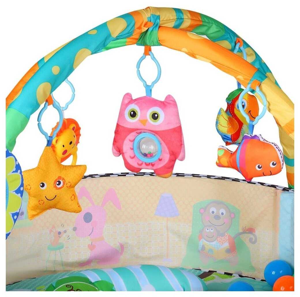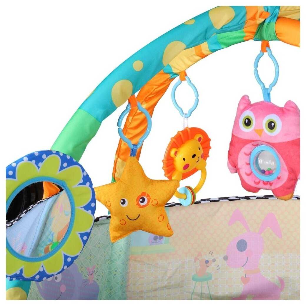 - + Коврик яркий, мягкий, с интересными игрушками для ребёнка.