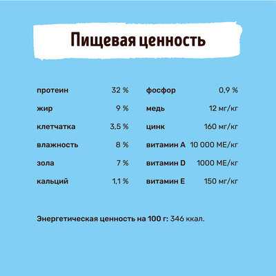 Минеральные вещества : | кальций, фосфор, медь, цинк |