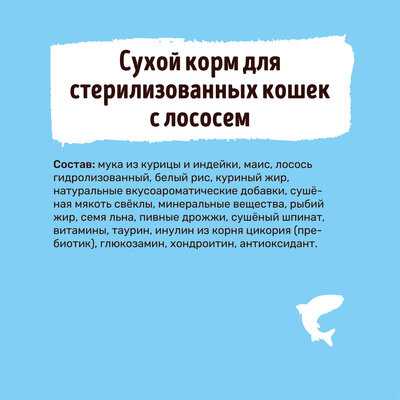 Особые потребности : | для живущих в помещении, для живущих на улице, для здоровья кожи и блеска шерсти, для стерилизованных/кастрированных, профилактика МКБ |
