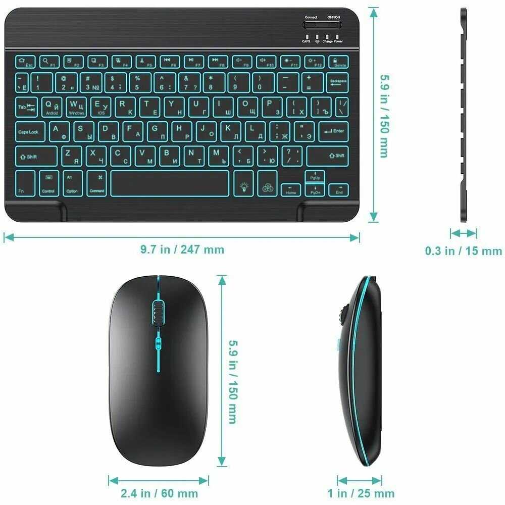 Клавиатура не большая,удобная,светящая,положил рядом с собой и управляй!👍 Мышь тоже светится!Набор без проводной,очень удобно.Огромное спасибо!🙏