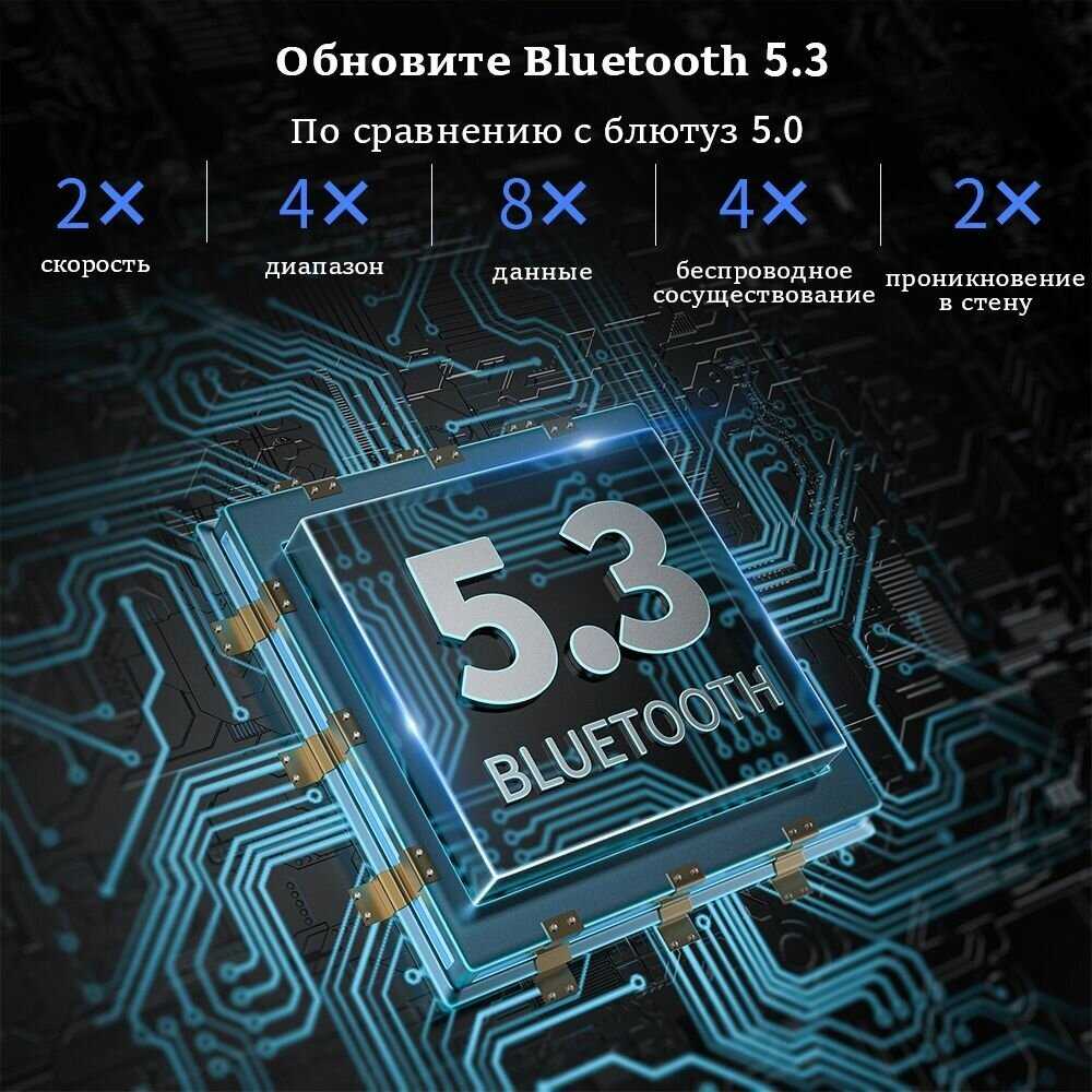 - Использование современного стандарта Bluetooth 5.3 обеспечивает более стабильное соединение и повышенную энергоэффективность по сравнению с предыдущими версиями.