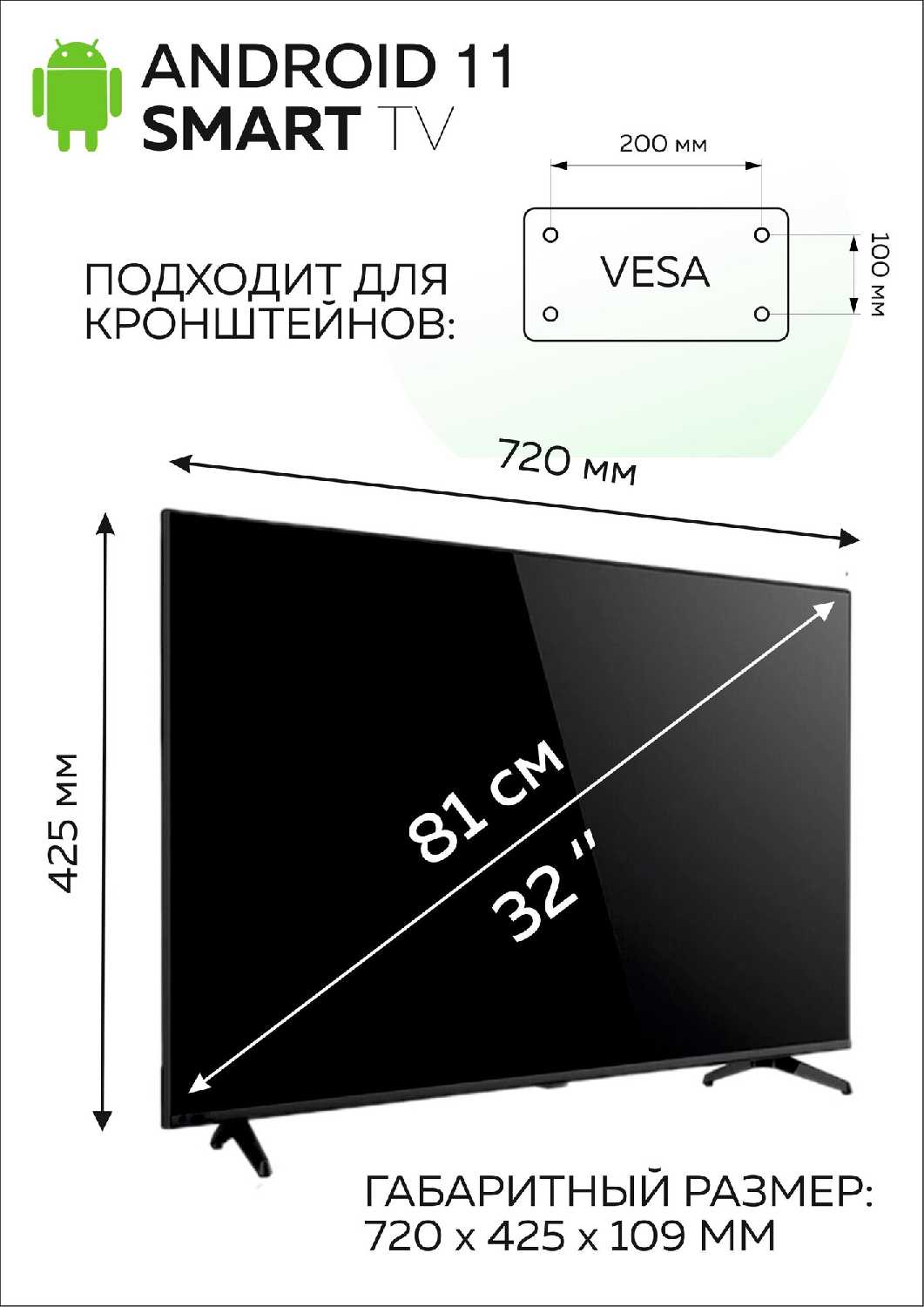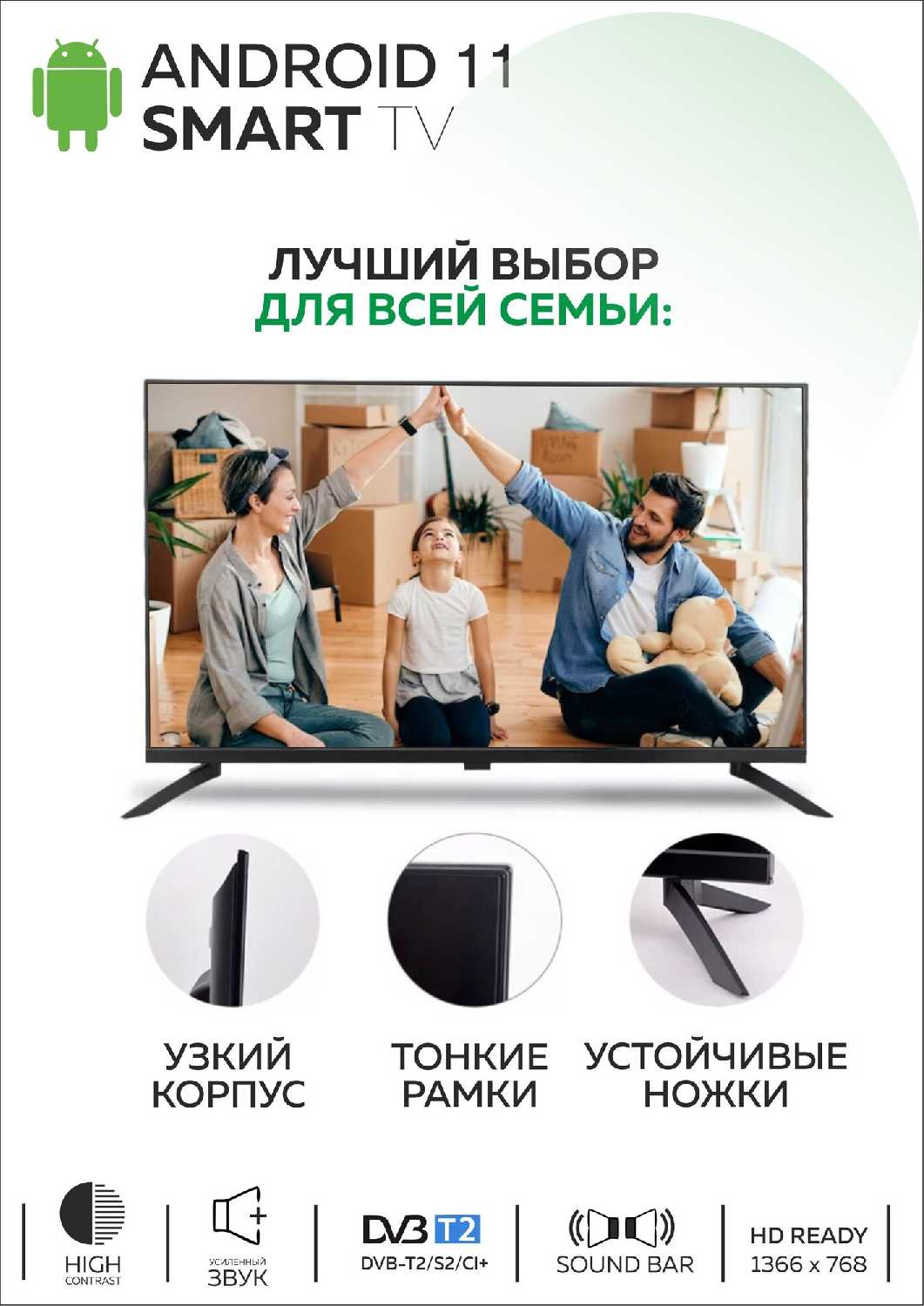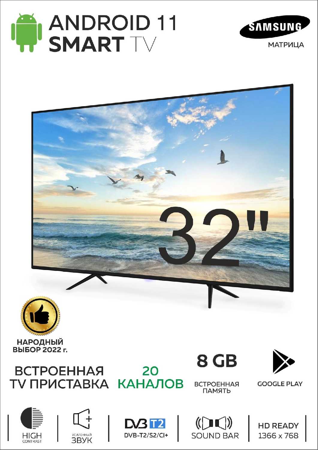 Обзор Smart TV Телевизор (Android 11.0/HD/32") - мнение пользователей*: