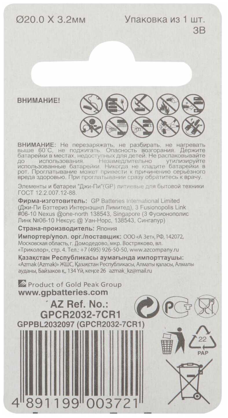 Типоразмер : | CR2032 (5004LC), CR3032 |