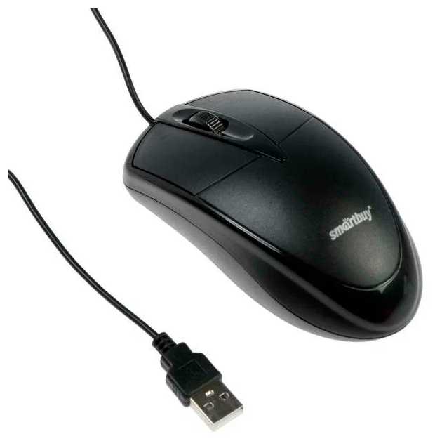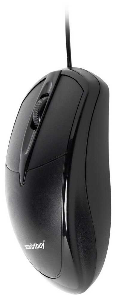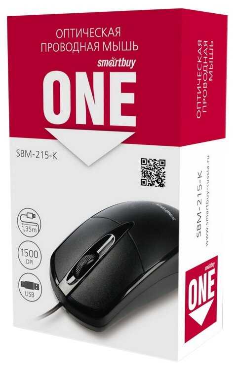 - + Мышь проводная Smartbuy модель One 215-K, цвет черный. Цена явно плюс, всего 158 рублей. Аккуратная коробка, есть крючек. В руки лежит нормально.
