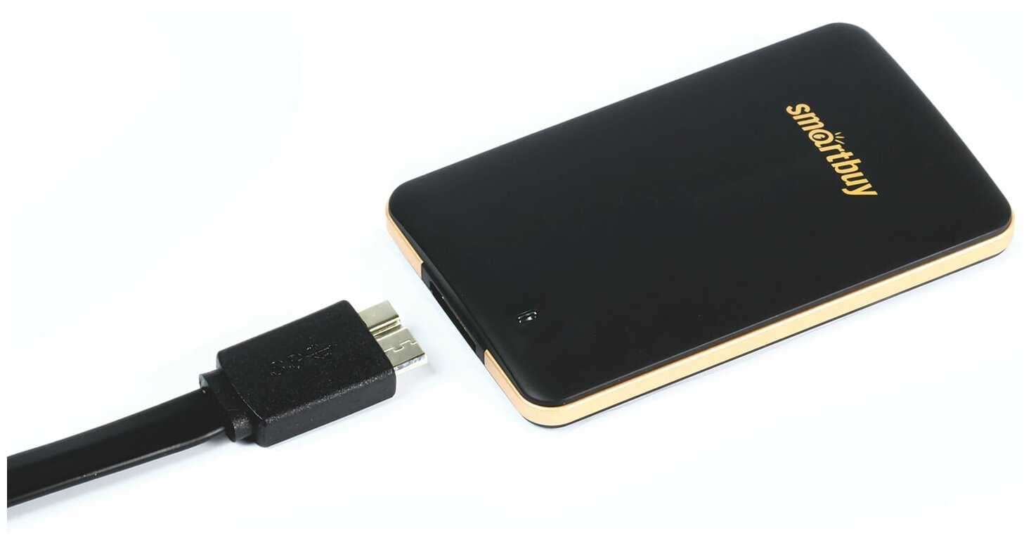После очередных проблем с потерей части важных файлов задумался о переходе с внешнего HDD на SSD. В качестве подопытного был выбран один из самых бюджетных вариантов от SmartBuy. Что сказать по первым впечатлениям. Скорость чтения/записи, конечно, отличается в лучшую сторону, но не то чтобы она была прямо фантастической. Внешний вид устройства, его вес и материалы полностью соответствуют низкой цене, тут не ждите слишком многого, хотя всё вполне аккуратно. Кабель очень короткий и жёсткий и из-за невесомости самого устройства никуда толком положить вы его не сможете - так и будет висеть. Рекомендую сразу подобрать какую-то внешнюю защиту, если будете постоянно носить SSD с собой. Комплектный мешочек - это, конечно, приятно, но защитит он разве что от пролетающих мимо комаров )