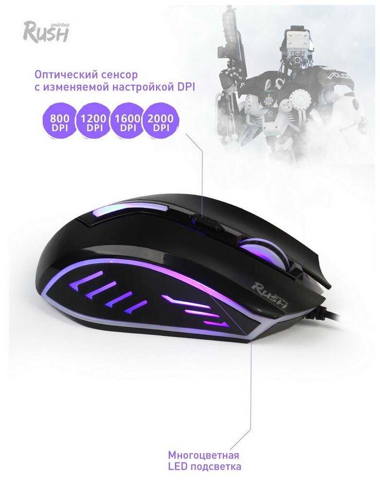 | Комплектация : | [Мышь Smartbuy Rush 712, USB, с подсветкой, черный, 4btn+Roll] X 2 шт. |