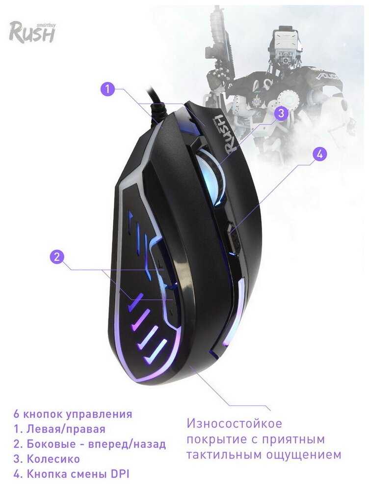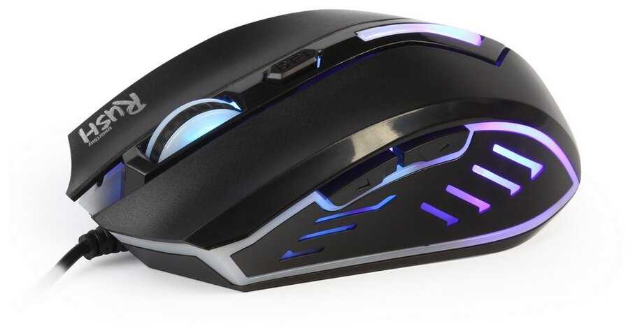 - + Отличная мышь, 5 кнопок, удобная для руки, многоцветная подсветка, длинный провод.
