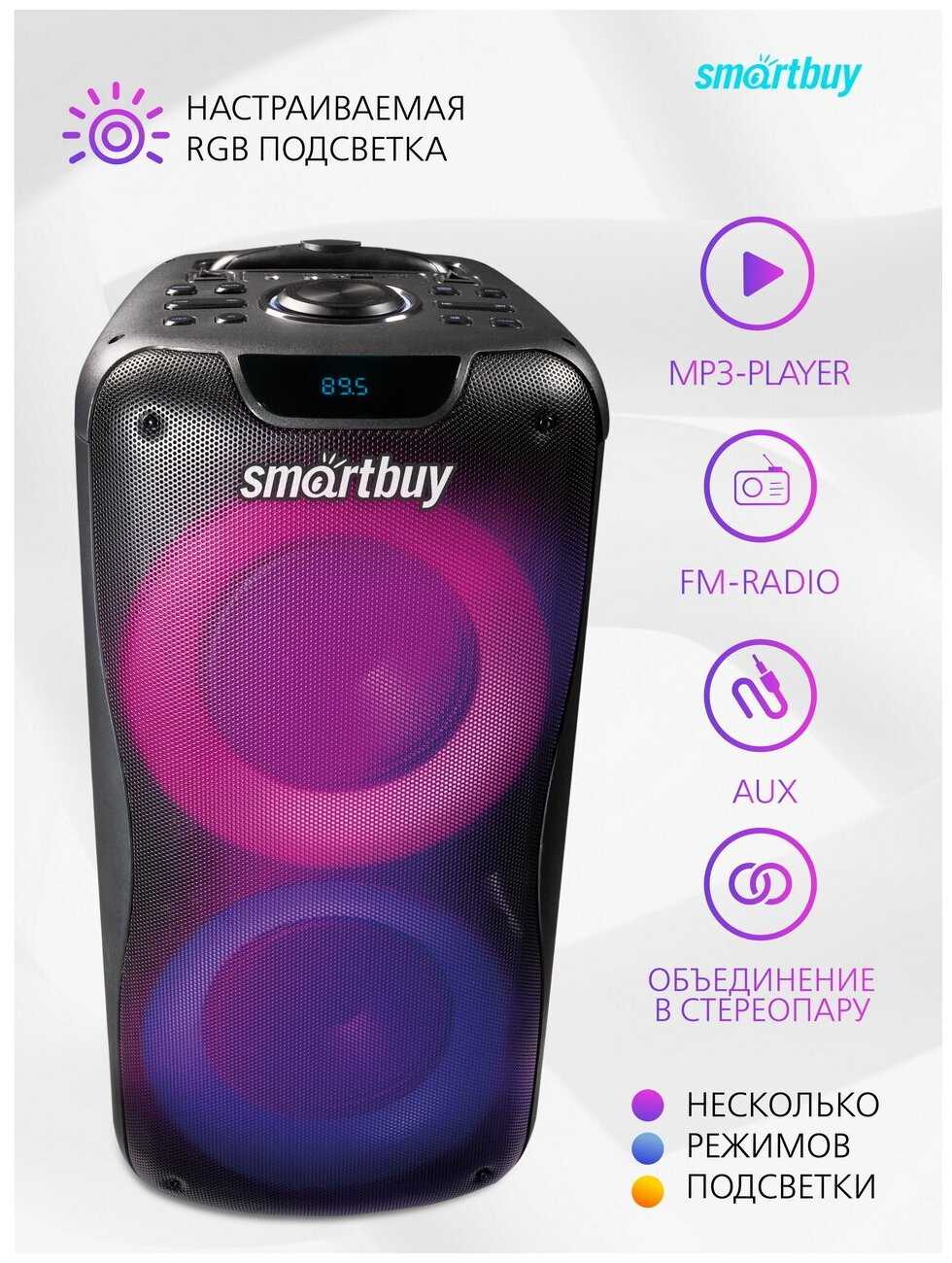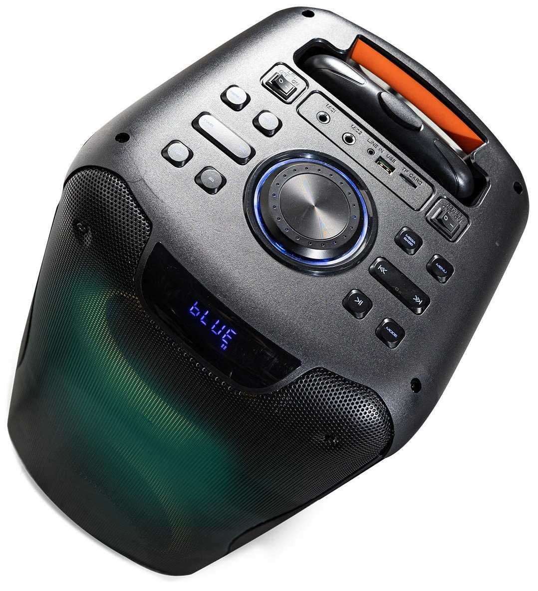 Кнопка Mega Bass всё решает. Звук становится сочным, амплитудным. Вся наша фонатека подверглась пересушиванию. Колонка у всех оставляет впечатления, ВАУ. Все подключения быстрые, на микрофоннах эхо можно пультом настроить, хотя в описании нет информации.