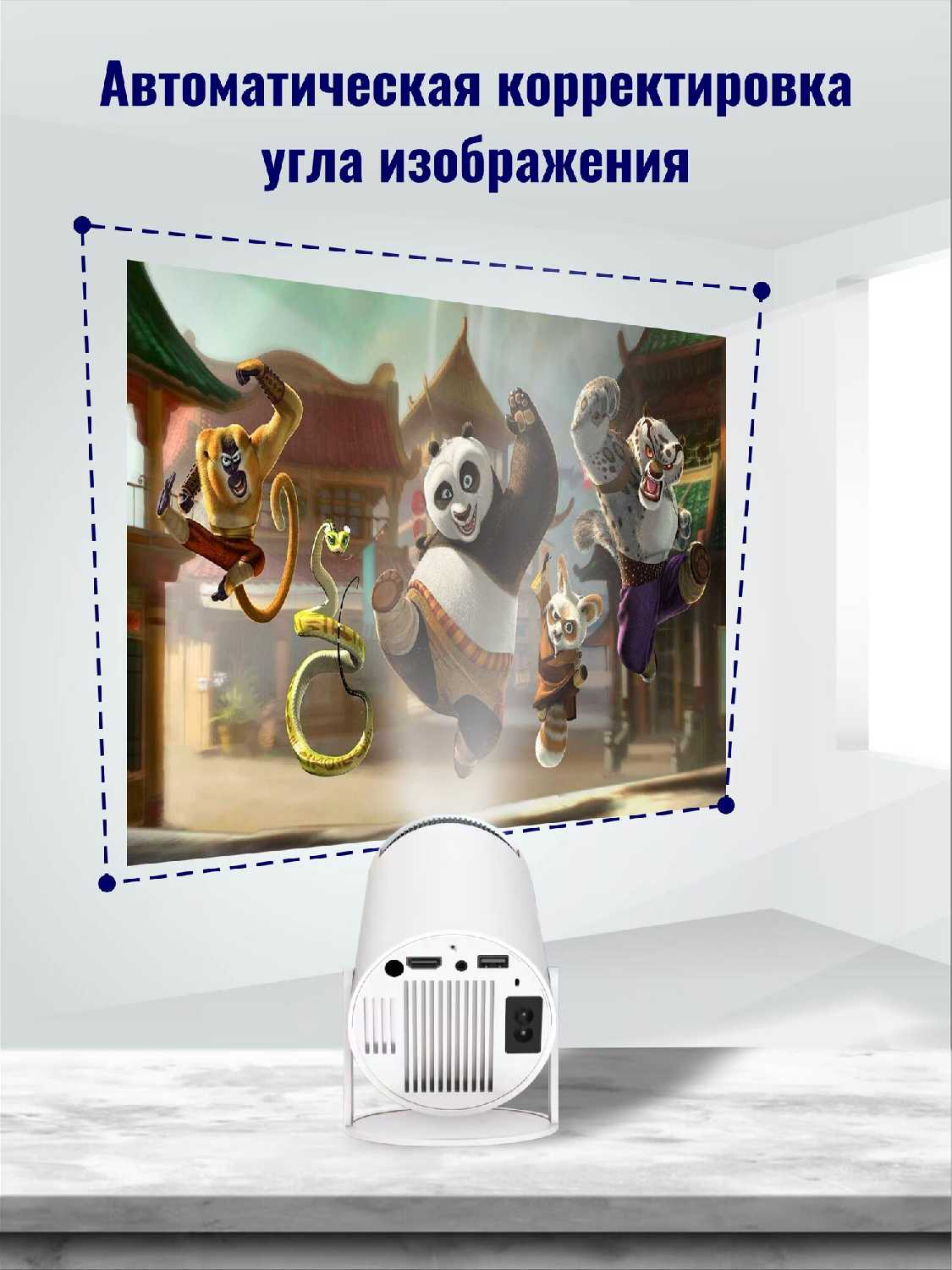 - + хорошо работает авто настройка положения картинки, только нужно ставить проектор строго напротив поверхности. платформа на которой стоит проектор устойчивая, практически не скользит. Резьба на этой же платформе стандартная, подойдёт под любой штатив/триногу.