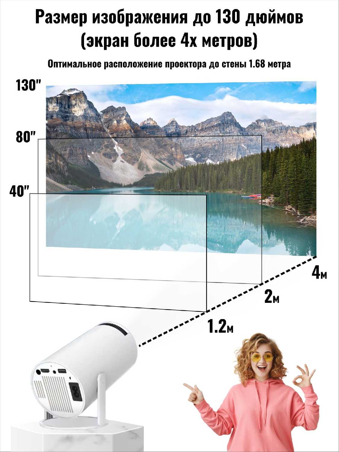- разрешение проектора: 1280x720