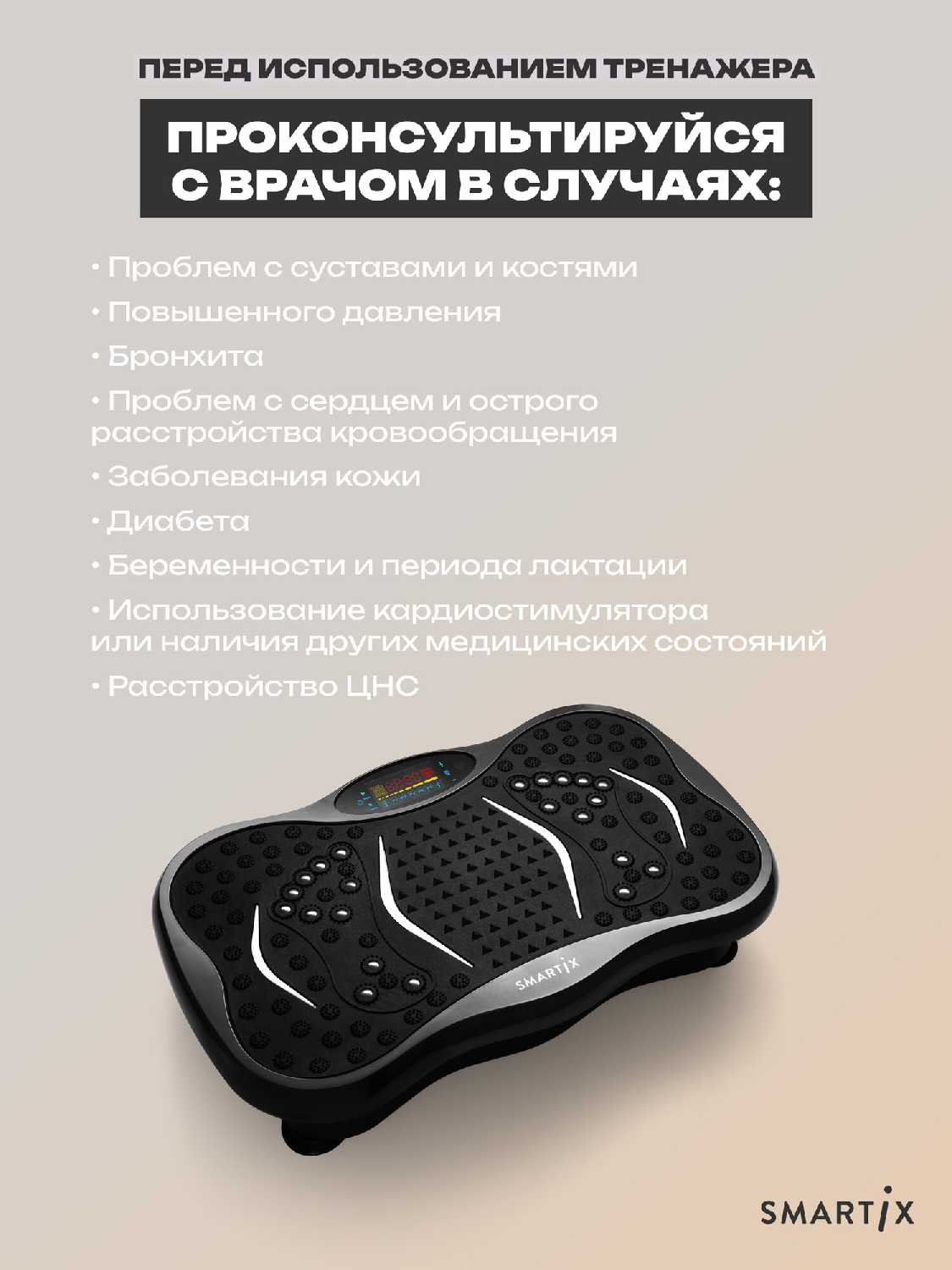 | Подробная комплектация : | Виброплатформа, эспандеры, пульт |