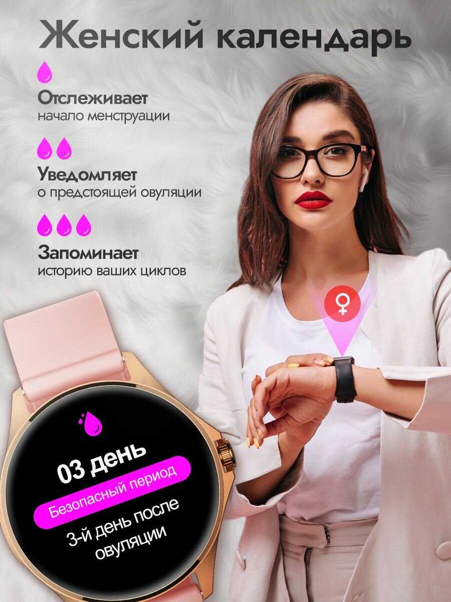 - + Очень стильные часы! Изящно смотрятся на руке, а два ремешка в комплекте позволяют сочетать с любыми нарядами. Хороший функционал, можно отвечать на звонки с часов, есть женский календарь, напоминание о необходимости попить воды, много спортивных режимов.