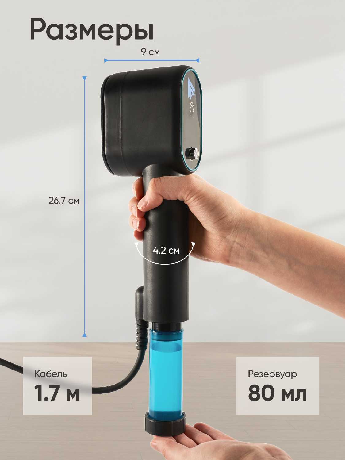 - - Резервуар для воды в ручке, маленький. Сам дивайз достаточно тяжёлый, весит не меньше утюга.