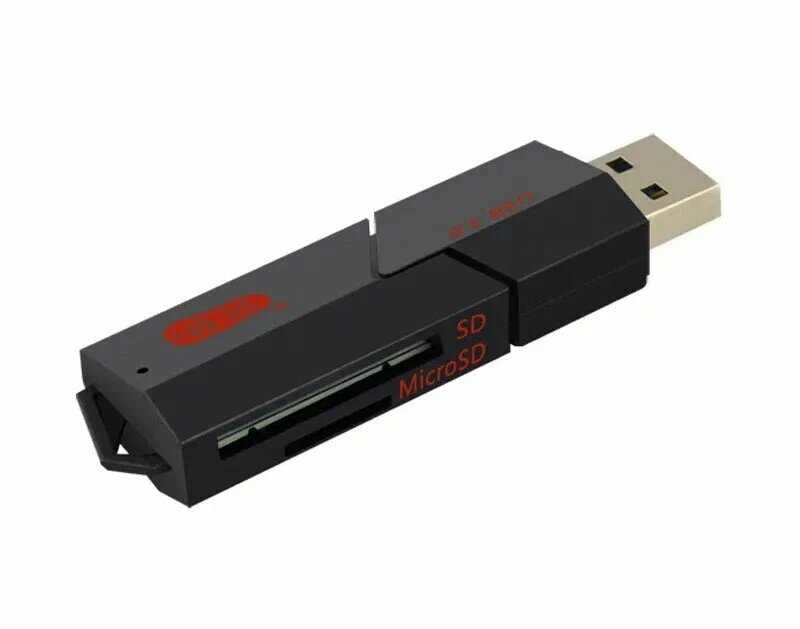 - + Работает хорошо, скорость чтения и записи собственно ограничена картой которую читает ридер,Не совсем понятно зачем там раздвижная часть,ну да ладно она не мешает.