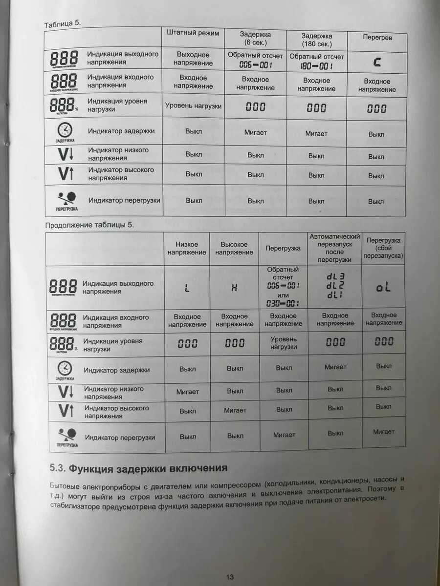 Функциональность, удобство использования и информативность Прибор предлагает ряд полезных функций, которые высоко оцениваются пользователями. Ключевым преимуществом является информативный дисплей, одновременно отображающий входное и выходное напряжение в реальном времени, а также процент текущей нагрузки, что позволяет пользователю контролировать работу и избегать перегрузок. Наличие двух розеток на выходе является стандартным и удобным решением для подключения нескольких приборов. Важной функцией является возможность настенного монтажа с помощью комплектных ножек или кронштейна, а также наличие листа для разметки. Пользователи также отмечают наличие ручного переключателя задержки включения (6 или 180 секунд), что полезно для подключения техники с компрессорами (холодильники, кондиционеры), и функцию байпаса, позволяющую подать питание в обход схемы стабилизации. Однако яркая, нерегулируемая подсветка дисплея consistently отмечается как серьезный недостаток для использования в жилых помещениях в ночное время. Некоторых пользователей смущает тот факт, что индикатор нагрузки начинает отображать данные только с 10%, а отсутствие отображения мощности в ваттах или вольт-амперах, только в процентах, усложняет точную оценку. Подключение осуществляется напрямую к клеммной колодке, а не через розетки, что для некоторых потребовало установки дополнительных розеток.