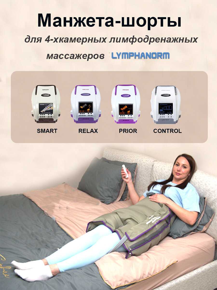 - 8 уровней давления, программы лимфодренажа, прессотерапии, комбинированные.