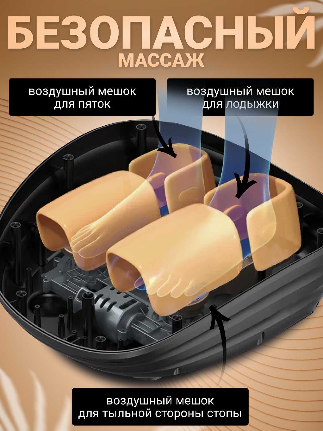 Да, есть обогрев стоп, который усиливает расслабление. Пользователи отмечают приятное тепло во время массажа. После сеанса ноги в кайфе, греет эффективно. Работает вместе с роликами и компрессией. Многие хвалят эту функцию. -