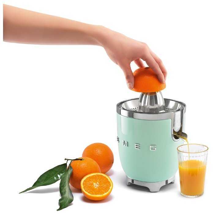 Качество сока — один из главных козырей. Фильтр эффективно задерживает мякоть и косточки, обеспечивая прозрачный напиток. Однако размер конуса рассчитан на стандартные апельсины и грейпфруты, что создает проблемы при работе с лаймами или небольшими лимонами. Жмых остается практически сухим, но отсутствие реверса не позволяет повторно отжать его для максимизации выхода. Это ставит SMEG в проигрышное положение перед моделями с двойным прессованием.