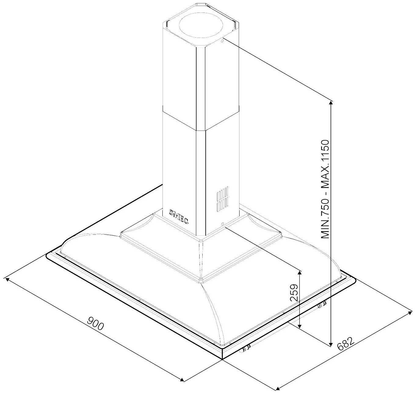 - ширина для установки: 90 см