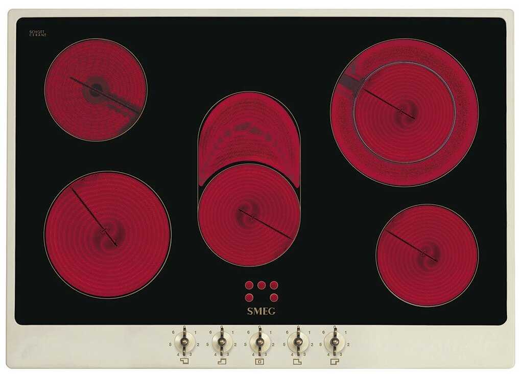 конфорка диаметром 14 см, конфорка диаметром 14,8 см, конфорка диаметром 12 см, с круглой зоной расширения 18 см, конфорка диаметром 14,4 см, с круглой зоной расширения 21,4 см, конфорка диаметром 14,8 см, с овальной зоной расширения 25,3 см