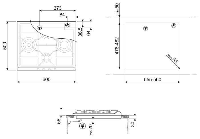 - + Шикарная газовая варочная поверхность, удобные ручки, удобное расположение конфорок.