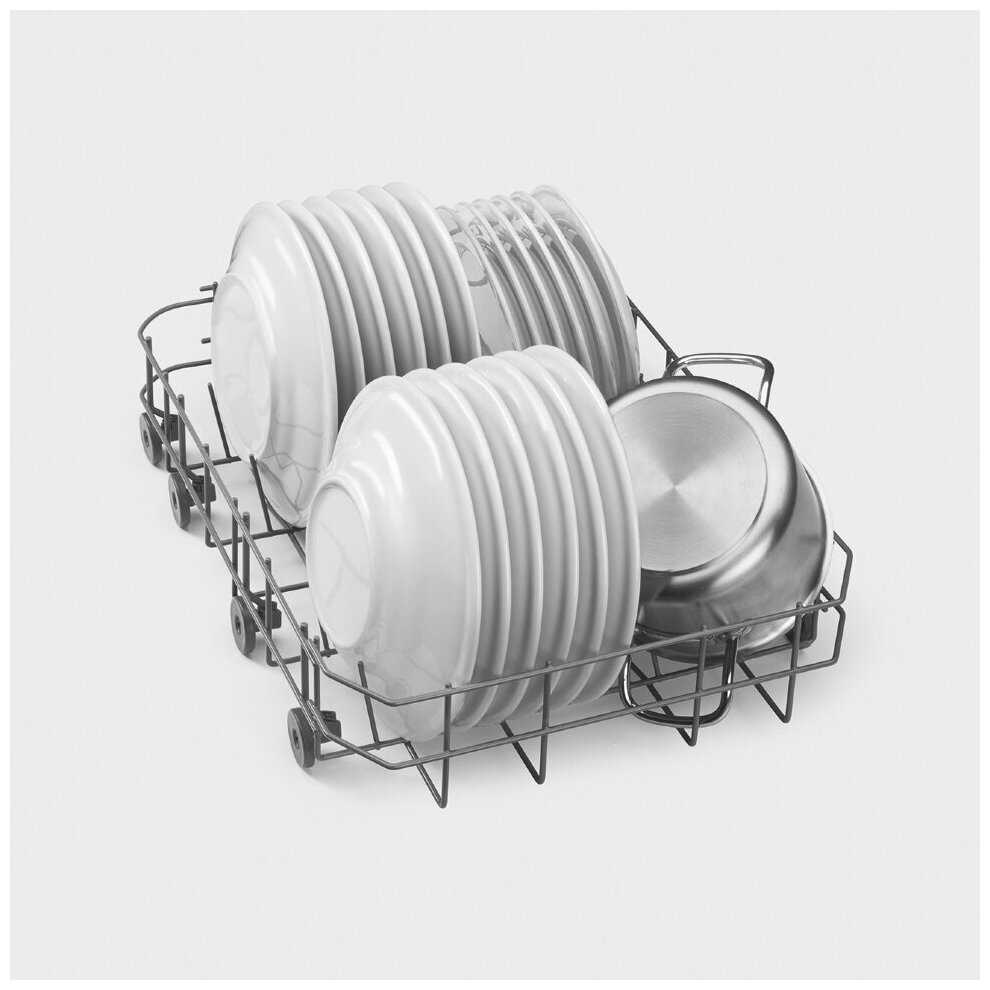 Это не особо широкая посудомоечная машина, поэтому её можно установить даже на небольшую кухню. Она вмещает где-то 8-9 комплектов посуды. Высота короба может регулироваться. Есть несколько программ мытья посуды, в том числе и ускоренная программа. Есть функция предварительного ополаскивания. Предусмотрена возможность отложить начало запуска работы машины, но мне проще запускать её в работу сразу. Мотор инверторный, она работает не особо шумно. В комплекте есть отдельно корзина для столовых приборов. Качество мытья нормальное, серый налет на посуде не остаётся. За 1 цикл работы расходуется примерно 10 литров воды. Машина встраиваемая, поэтому она нормально смотрится в интерьере.