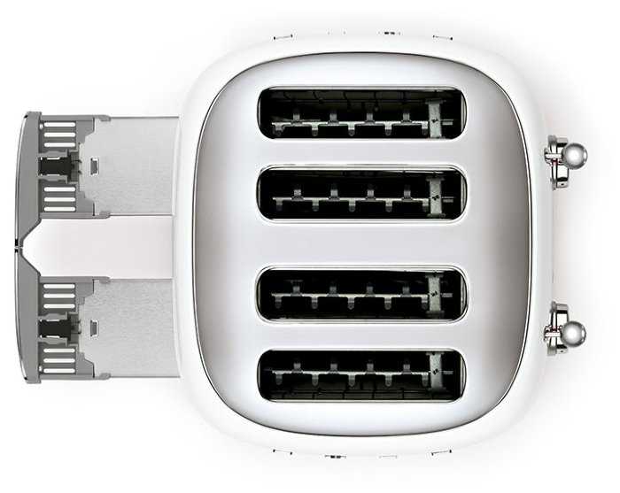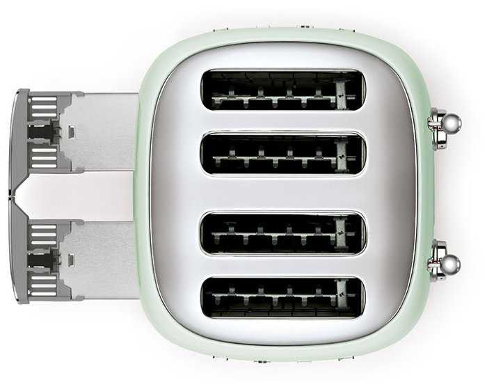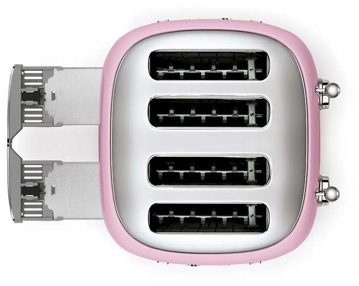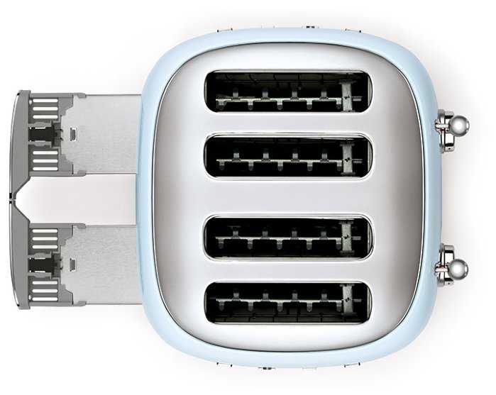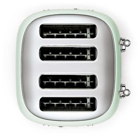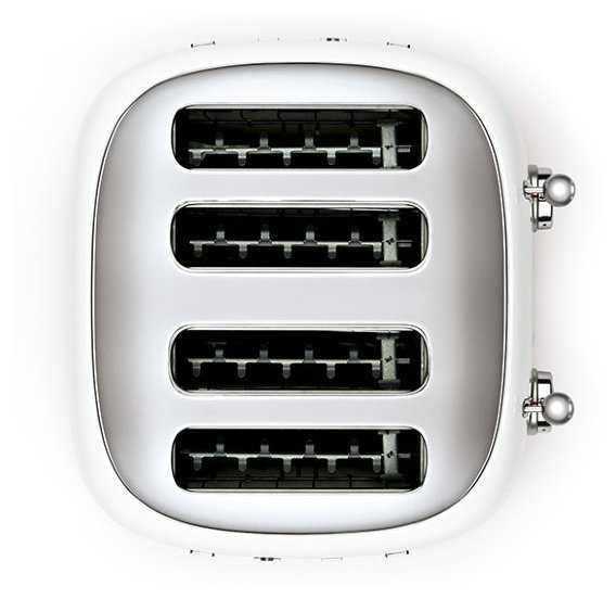 - + Необычное количество отсеков для тостов, красивый цвет, автоматическое центрирование, отсек для крошек.