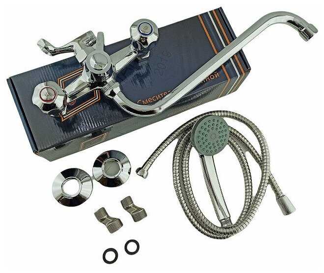 - комплектация: -Смеситель; -Лейка для душа; -Шланг для душа 150 см; -Держатель для лейки; -Отражатели 2шт; -Эксцентрики 2шт.