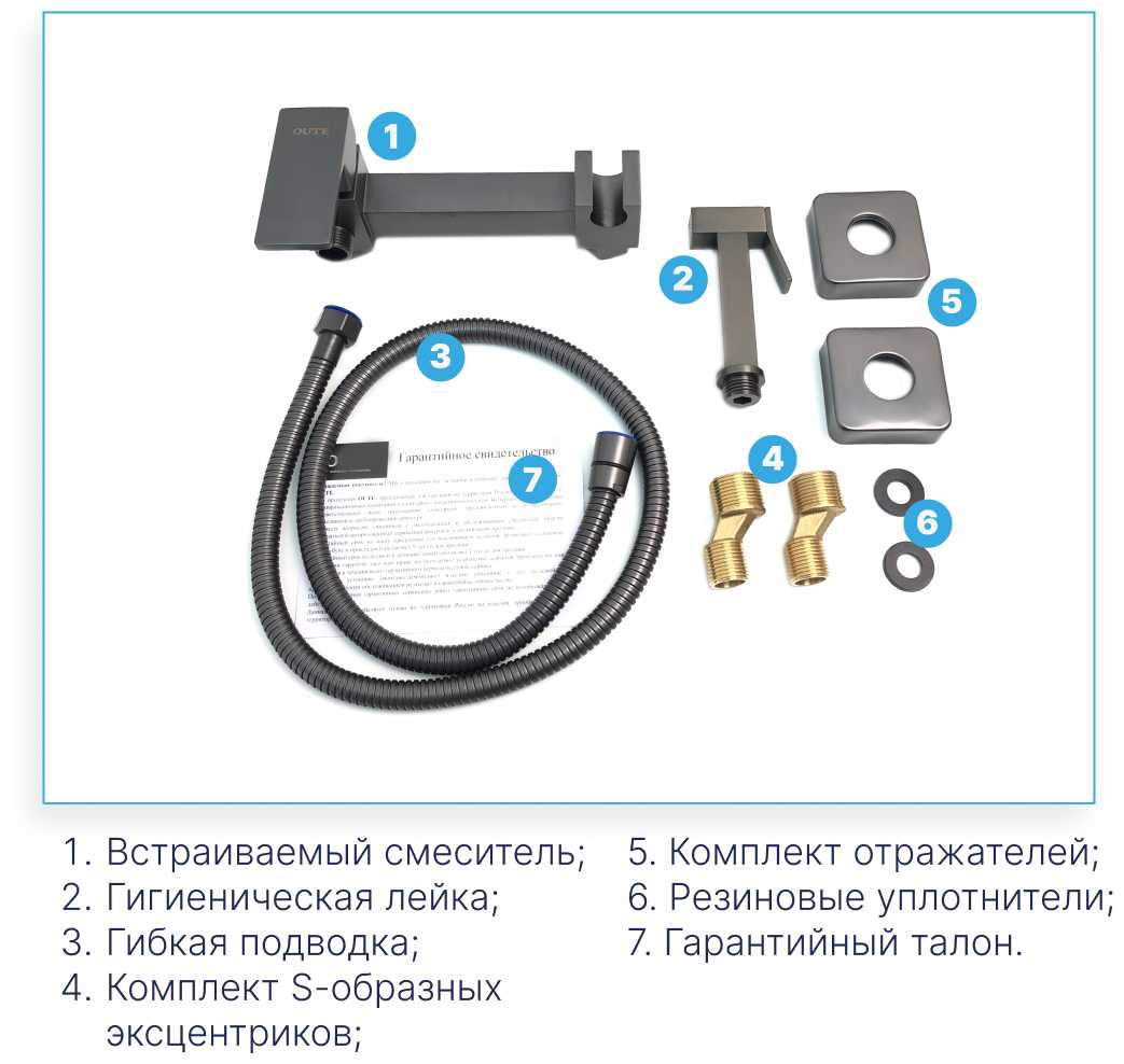 - комплектация: встраиваемый смеситель. гигиеническая лейка