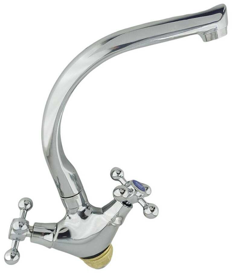 Do.Korona Смеситель для кухни/ Dokorona двухвентильный из латуни, крепление на гайке, цвет глянцевый хром.