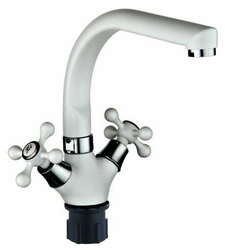 Potato ЭВЕРЕСТ Смеситель для кухни (мойки) высокий с поворотным изливом, двухрычажный, белый, B69-657
