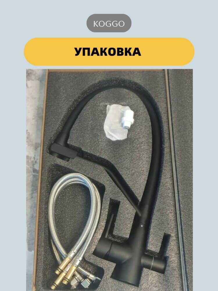 7.3/10 баллов 7.3/10 балловKOGGO Смеситель для кухонной мойки под фильтр с краном для питьевой воды и гибким изливомХарактеристики:- цвет товара: серый