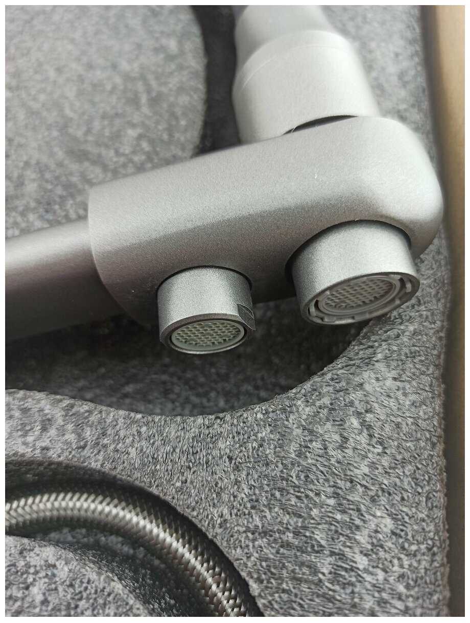 6/10 балловRainsberg корпус цвета титан с силиконовым гибким черным изливом, однорычажный,с отдельным выходом под фильтр. Цвет: Титан с черным изливом