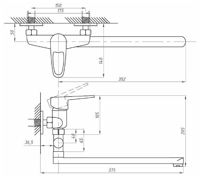 - вид излива: традиционный